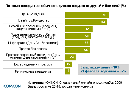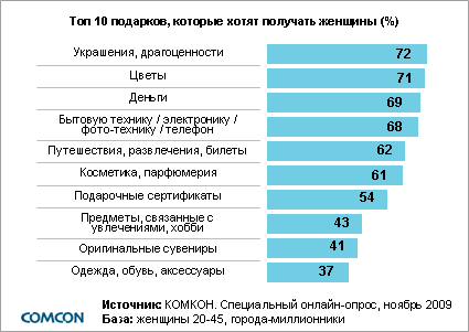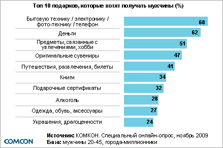 Специальный опрос компании КОМКОН о предпочтениях подарков