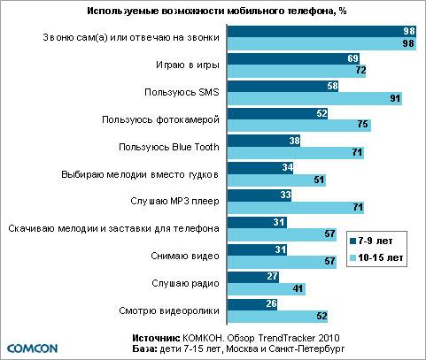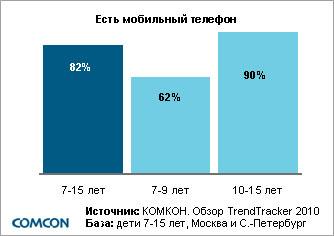 В преддверии Дня защиты детей, традиционно отмечаемого 1 июня, компания КОМКОН публикует данные из регулярного отчета TrendTracker 2010, касающиеся пользования юными россиянами мобильными телефонами (жители Москвы и Санкт-Петербурга).