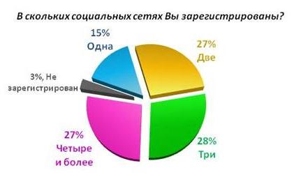Результаты этого исследования помогли создать портрет российского пользователя, который в ходе интернет-сессий стремиться социализироваться. В отличие от граждан других стран россиянин любит «сидеть» сразу в нескольких социальных сетях. Причем процент таких пользователей подавляющий— 82%. Лишь каждый шестой пользователь интернета зарегистрирован только в одной сети, а респондентов, не участвующих в интерактивных социальных средах, набралось всего 3%.
