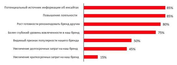 Для маркетологов понятие «значимость фанатов» («value of a fan») означает очень различные вещи. В целом, члены WFA четко понимают, что фанатские страницы предназначены, прежде всего, для получения углубленных данных о потребителях, а также для формирования их лояльности, вовлеченности и готовности рекомендовать бренд другим потребителям. Такие страницы в гораздо меньшей степени предназначены для увеличения объемов продаж – краткосрочных или долгосрочных. На основе такого понимания был разработан второй этап исследования среди поклонников, в рамках которого мы планировали изучить, как именно маркетологи могли бы оптимизировать свои страницы для достижения этих целей.