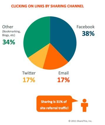 — Мировой лидер в этой области - сеть Facebook, на долю которой приходится 38% всего sharing-трафика. Доля Twitter - 17%. Столько же трафика приносят ссылки, отправленные по электронной почте
