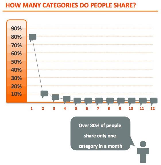 — С точки зрения тематики, 80% пользователей делятся ссылками преимущественно на одну, определенную тему (например, бизнес, политика, развлечения). Отклик более 70% пользователей получает также только одна тема, интересная им