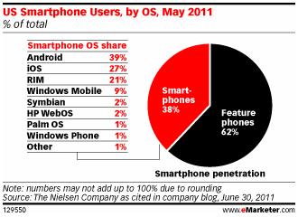 Представители Nielsen Company утверждают – несмотря на то, что интерес к андроидам растет, они все еще не сумели занять достойное место на рынке рекламоносителей. Это кажется нелогичным, ведь по отчетам на май 2011 среди владельцев смартфонов их используют уже 39%, и только 27% предпочитают систему управления IOS, в том числе iPhone и iPads.