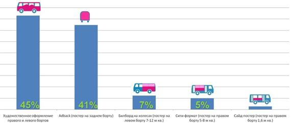Самыми востребованными по итогам 2011 года стали форматы «художественное оформление» (45% размещений) и Adback (41%).