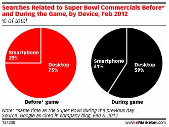В феврале Google сообщил, что 25% запросов о рекламе на прошедшем Super Bowl за день до матча поступало с мобильных устройств. Во время самой игры уже 41% подобных запросов приходило через мобильники.