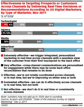 Согласно исследованию Acxiom и DIGIDAY, проведенному в ноябре 2011 года, несмотря на то, что крупные американские рекламодатели и агентства имели возможность идентифицировать и сегментировать свои клиентские базы, только некоторые из них сделали это таким образом, чтобы клиенты и покупатели получали индивидуальную информацию в режиме реального времени и через несколько каналов коммуникации.