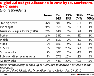 По данным агентства ValueClick media, в 2012 году 65% рекламодателей планируют увеличить бюджеты на мобильную рекламу, а 49% аналогичным образом поступят с видеорекламой. А вот уменьшать бюджеты или вовсе отказываться от данных рекламных каналов намерены лишь 10% и 12% компаний соответственно.