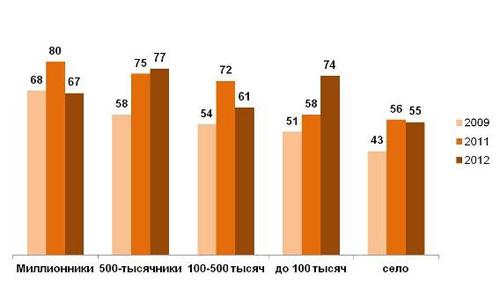 В Москве оценка среднего дохода для нормальной жизни сократилась за год на 10% и составила в июле 2012 года 83 тысячи рублей на семью из трех человек. В Санкт-Петербурге средняя оценка «нормального» уровня дохода начала снижаться уже в 2011 году и продолжила в текущем. Теперь средний показатель составляет там 78 тыс. руб. в месяц на троих. Что всего на одну тысячу рублей больше среднего показателя по остальным российским городам с населением свыше миллиона жителей.