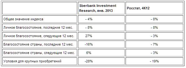 Индекс потребительского доверия Sberbank CIB (Индекс Иванова), январь 2013 года