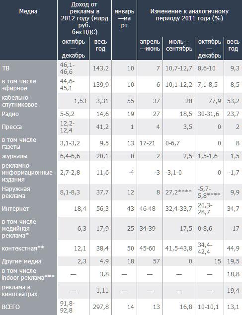 Расходы на рекламу в России в 2012 году