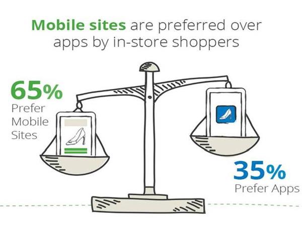Сайты и мобильные приложения магазинов и брендов пользуются значительно меньшей популярностью в качестве источника информации о товарах. При этом во время шопинга в оффлайн-магазинах большинство предпочитает обращаться к мобильным сайтам (65%), нежели чем к мобильным приложениям (35%).