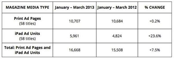 Проведя исследование 58 печатных журналов, имеющих iPad-версии своих проектов, аналитики Publisher Information Bureau выяснили, что количество рекламы в iPad-версиях выросло в первом квартале