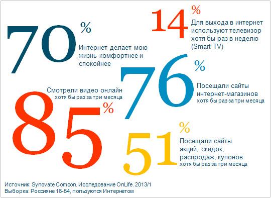 • Около 70% интернет-пользователей считают, что интернет делает их жизнь комфортнее и спокойнее