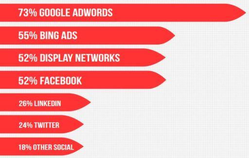 Почти три-четверти опрошенных маркетологов (73%) в 2014 году планирует увеличить расходы на контекстную рекламу AdWords, 55% на размещение в Bing, а 52% планируют увеличивать рекламный бюджет на Facebook: