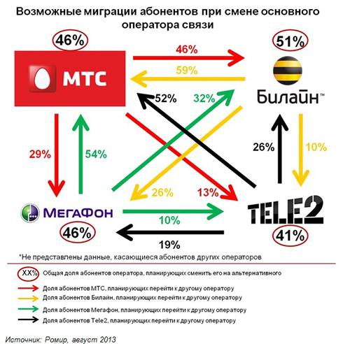Итак, согласно результатам исследования, более половины абонентов Билайн (59%), Мегафон (54%) и Tele2 (52%) из числа тех, кто планирует сменить своего основного оператора, в качестве альтернативы рассматривают МТС. Абоненты же МТС, которые собираются сменить своего оператора, в первую очередь рассматривают Билайн – 46%.