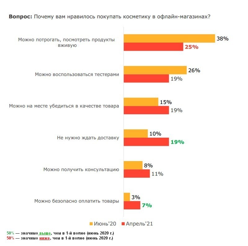 Покупательниц больше всего привлекают отсутствие необходимости ждатьдоставку ибезопасность оплаты товаров. При этом им все так же важна возможность потрогатьтовары и посмотреть их, что называется, вживую.