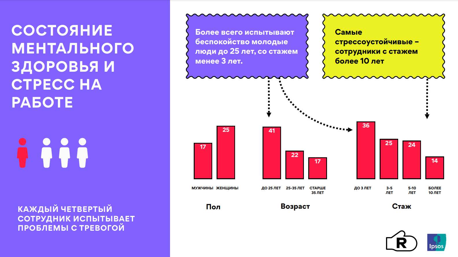 Высокий уровень стресса негативно влияет не только на ментальное здоровье отдельных сотрудников, но и на эффективность бизнеса работодателя. RODNYA Creative PR Studio и исследовательской компанией Ipsos при поддержке dentsu Russia провели первое национальное исследование проблем ментального здоровья в сфере коммуникаций. Опрос охватил порядка 500 респондентов как среди крупнейших компаний на рынке, так и среди небольших независимых игроков