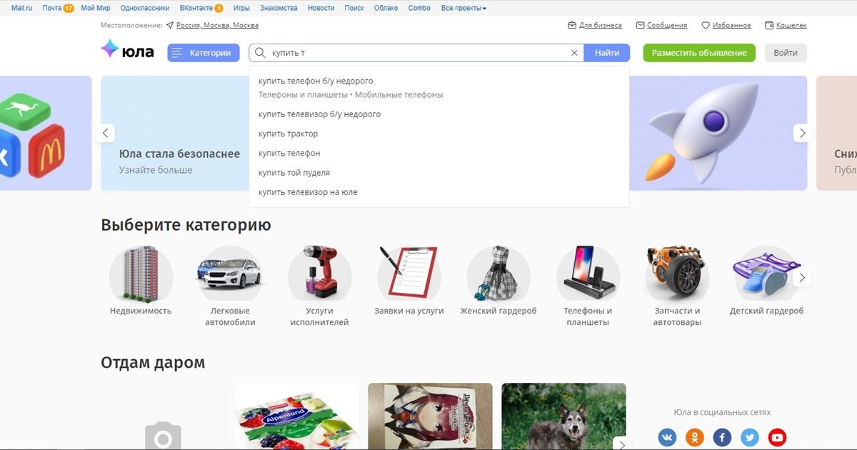 Молодежь публикует на «Юле» свои объявления и помогает родителям с продажейкак бытовой техники, так и автомобилей или недвижимости. Рост популярностиплатформы произошел благодаря ее интеграции с социальной сетью «ВКонтакте», врезультате которой в соцсети появился сервис «Объявления». Помимо «Юлы»,подростки реализуют товары через сервис частных объявлений «Авито», которыйнаходится в рейтинге на 16-м месте