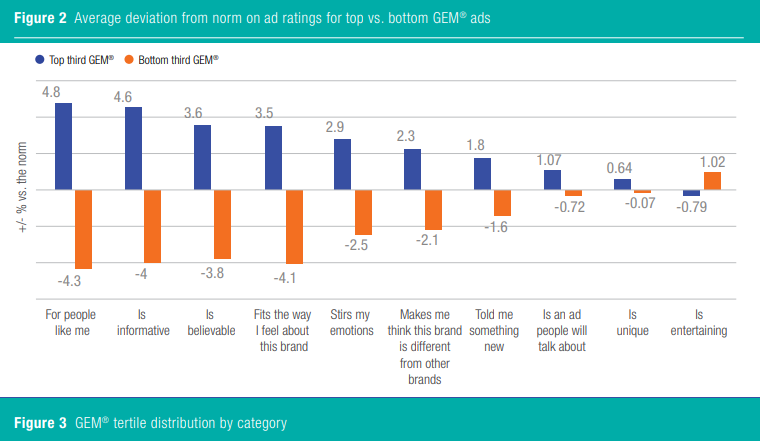Реклама с высоким показателем гендерного равноправия на 20% чаще влияет напотребителей мужского и женского пола в момент покупки. Но поскольку женщинычасто несут большую ответственность за домашние покупки, чем мужчины, это можетоказать существенное влияние на результаты бизнеса, говорят исследователи.Кроме того, объявления, набравшие больше баллов GEM, также на 35% чащепоказывают более высокий уровень вовлеченности в отношения с брендом (BrandRelationship index).