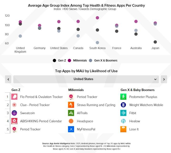 Еще один важный тренд среди зумеров — внимание к здоровью.Пользователи активно скачивают приложения для медитаций, подсчета калорий, бегаи спорта. Абсолютные фавориты в категории — менструальные трекеры, они лидируютпо всему миру. За первое место в категории здоровья и спорта соревнуются сразудва календаря — Flo и Clue.
