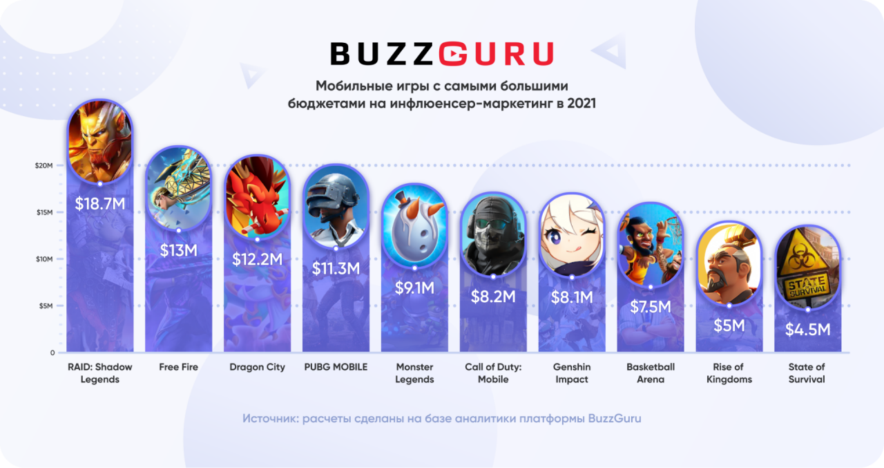 Топ мобильных игр с крупнейшими затратами на инфлюенс-маркетинг — BuzzGuru