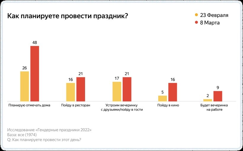 При этом чаще покупатели планируют тратиться на подарки к 8 Марта, чем на поздравления с 23 Февраля