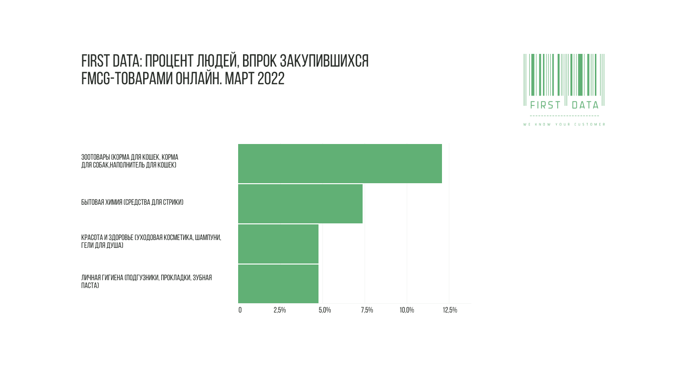 Аналитики First Data сравнили паттерны поведения покупателей крупныхинтернет-магазинов за март текущего года и за предшествующие три месяца (периодс конца ноября 2021 до 24 февраля 2022 года). В ходе исследования выявили тех,кто в марте сделал значительные запасы непродовольственных товаровповседневного спроса — в больших количествах покупал зоотовары, бытовую химию,товары для красоты и предметы гигиены.