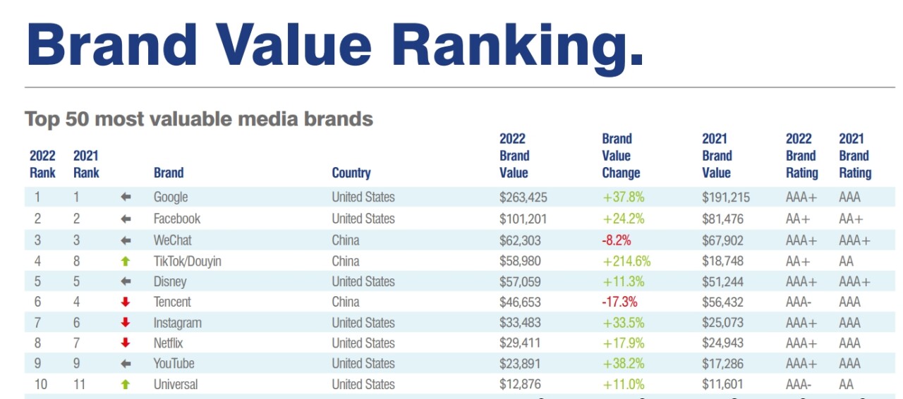 Годом ранее китайская соцсеть занимала восьмую строчку в рейтинге Brand Finance Media. Лидерство же удержал Google
