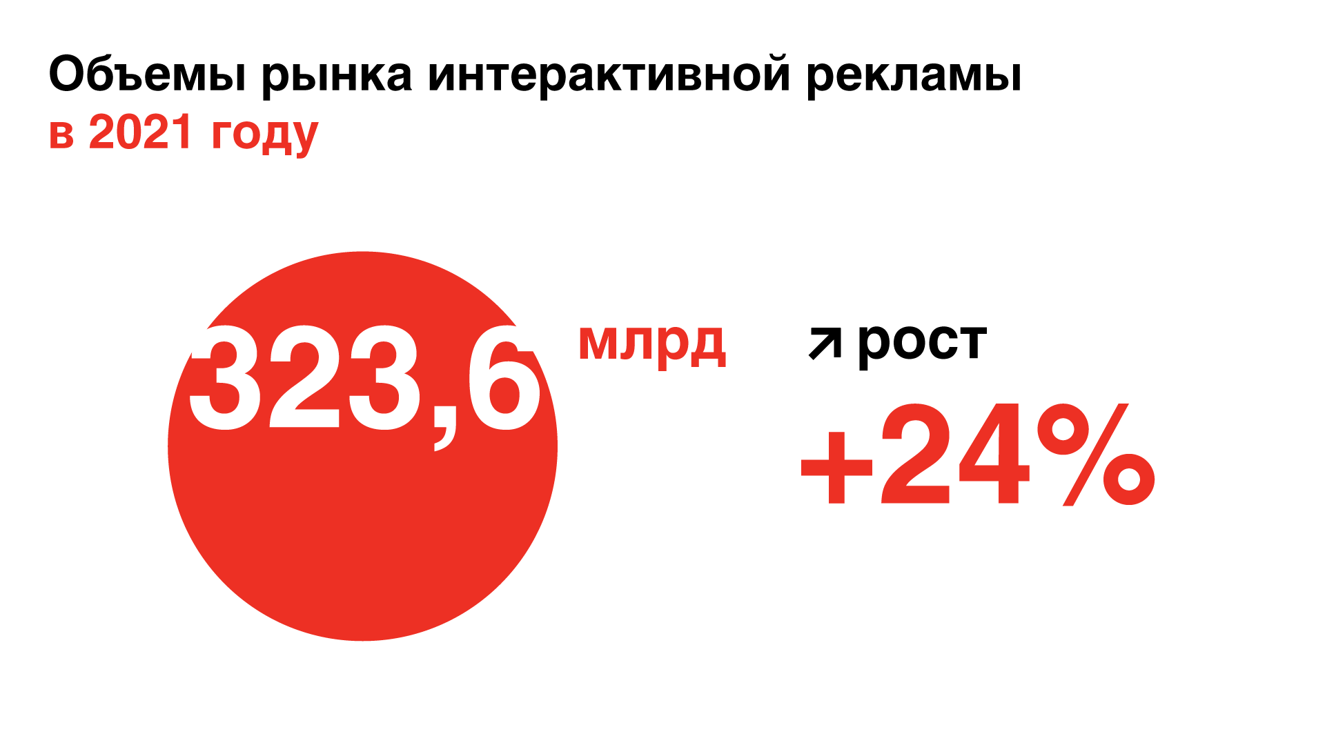 Весь рынок интернет-рекламы за прошлый год вырос на 24%, до 323,6 млрдрублей без учета НДС. Это близко к ранее представленной оценке Ассоциациикоммуникационных агентств России — 313,8 млрд рублей.