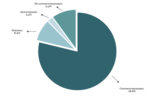 Респондентам предлагалось оценить пять первых товаров, которые предлагаеткаждая площадка в ответ на тестовый запрос. Шкала оценки содержала четырекатегории: товар полностью соответствует запросу; товар может заменить товар иззапроса; дополнение к товару из запроса; товар не соответствует запросу.