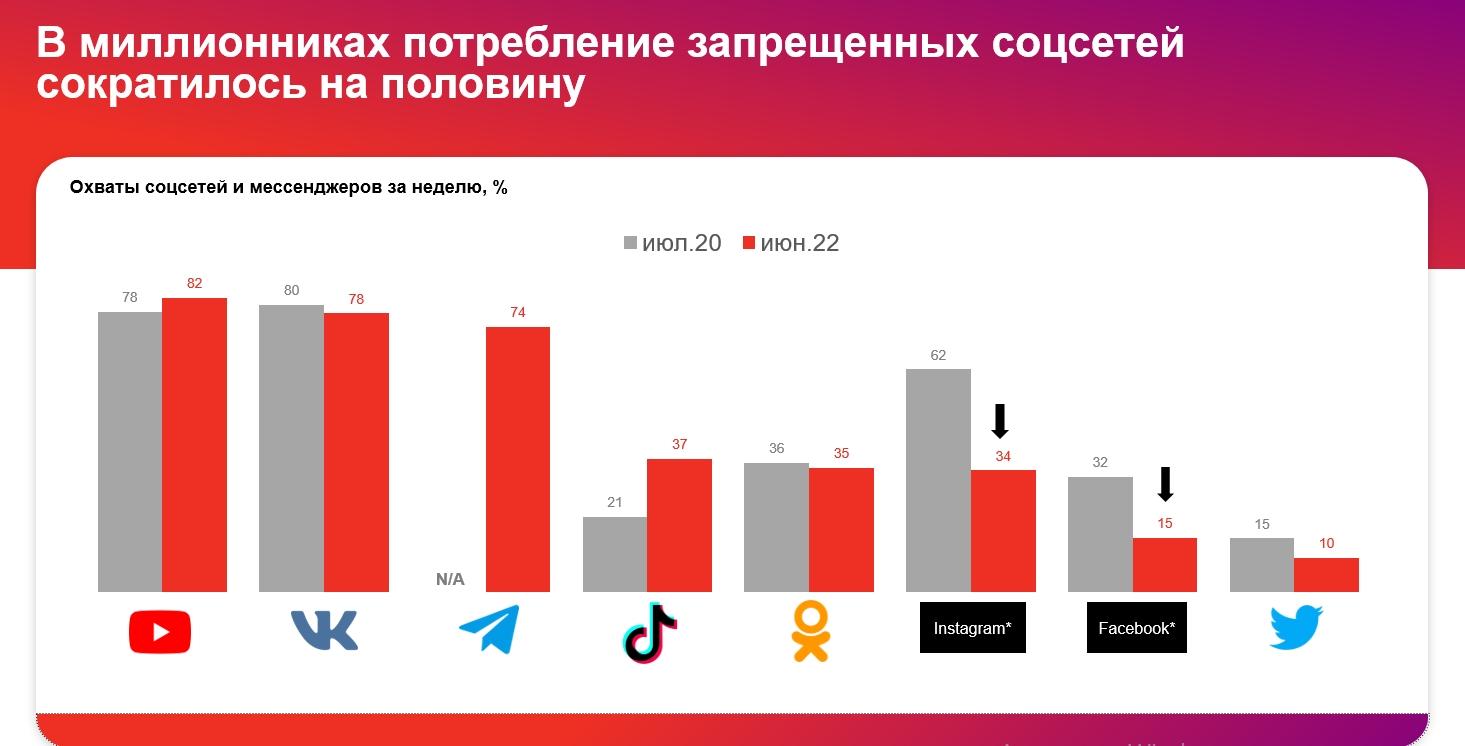 Потребление запрещенных соцсетей сократилось на половину
