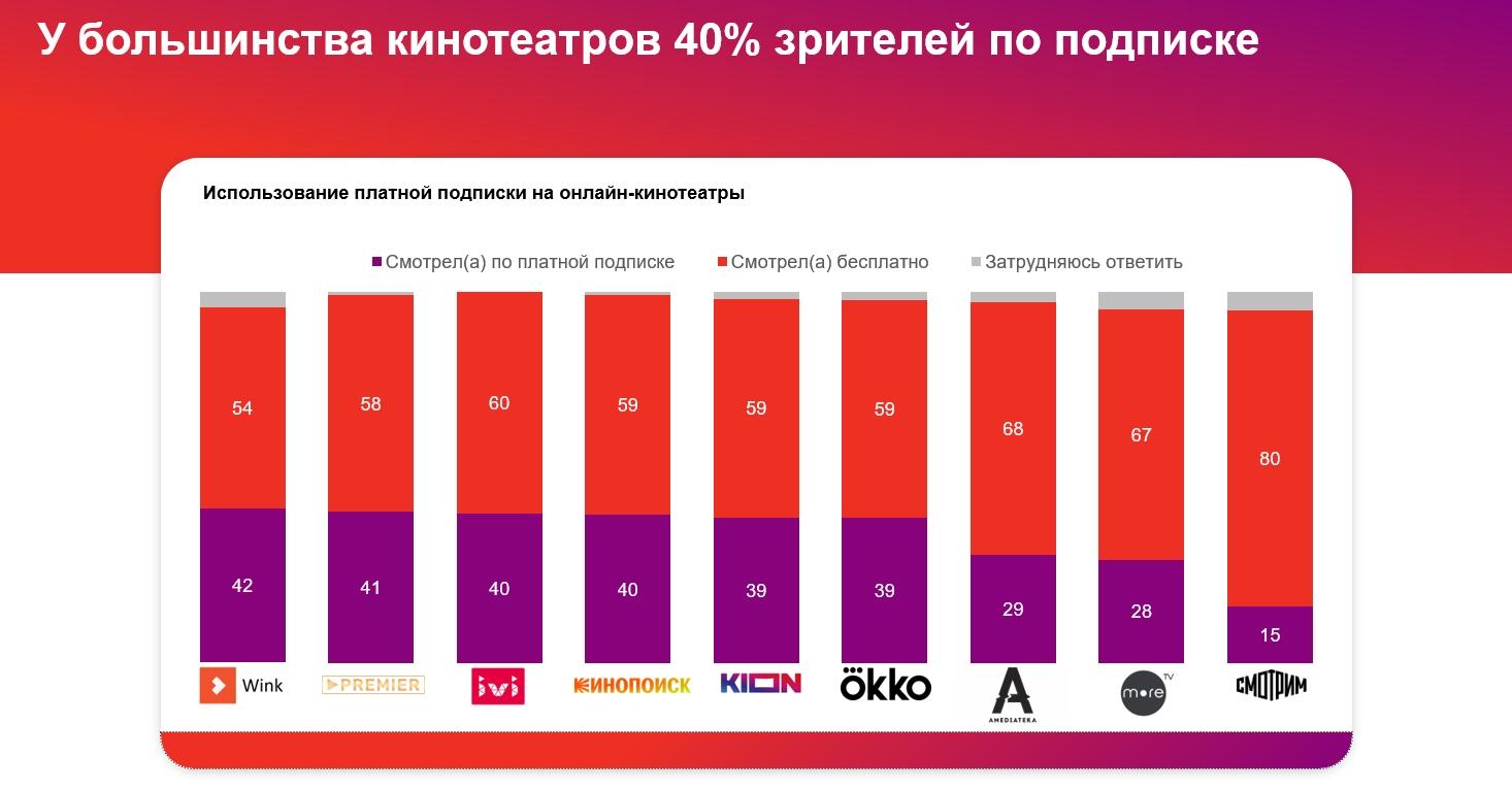 У большинства кинотеатров 40% зрителей смотрят контент по подписке.