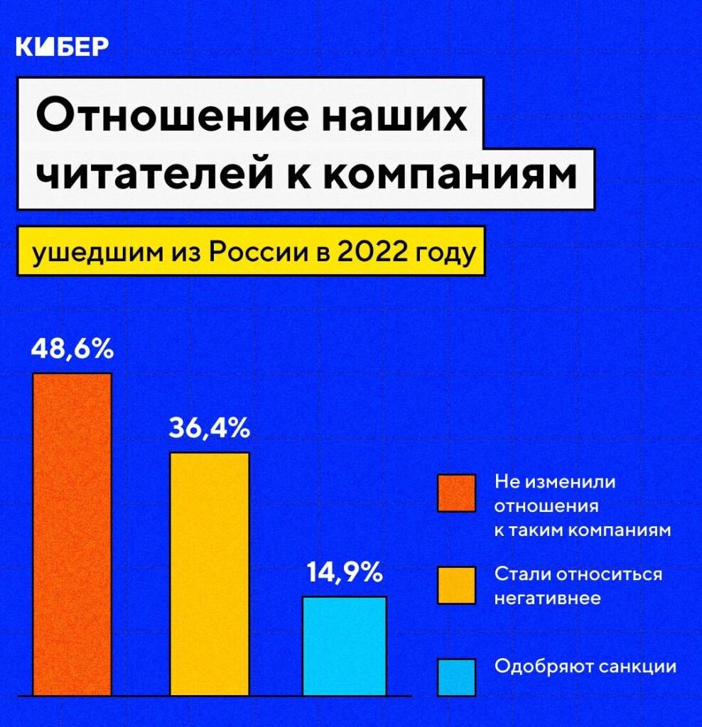 Большая часть геймеров (63%) следит за тем, какие компании ограничиваютдоступ к своим играм и сервисам в России. При этом почти половина респондентовне изменили отношение к таким компаниям, еще 36,4% стали относиться негативнее.Самый низкий интерес к этому процессу показали респонденты младше 18 лет – 38%геймеров этого возраста сообщили, что не интересуются тем, какие компанииуходят или частично уходят из России