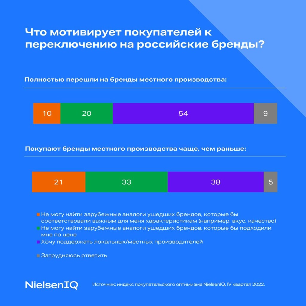 Еще одна ключевая причина, мотивирующая потребителей переключаться нароссийские бренды, — отсутствие зарубежных аналогов по подходящим ценам.Этот фактор повлиял на треть россиян, которые стали чаще выбиратьотечественные продукты.