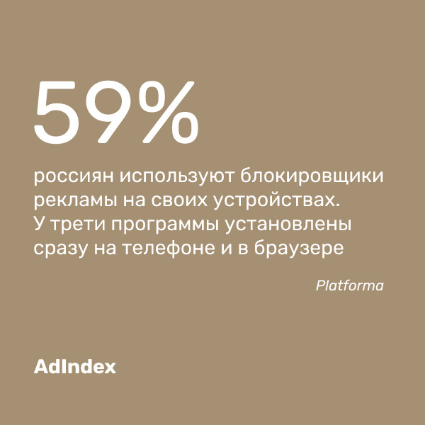 — Почти 60% россияниспользуют блокировщики рекламы на своихустройствах, согласно данным опроса Platforma. У третиопрошенных программы установлены сразу на телефоне и в браузере. Общий эффектот рекламы имеет значение для каждого пятого россиянина. Более 80% респондентовхотя бы раз купили что-то из увиденного в рекламе, несмотря на недоверие куказанной информации. На оформление обращают внимание 28% россиян, для 23%важен текст. Голос диктора имеет значение для 15%, музыку из рекламы слушают14% граждан.