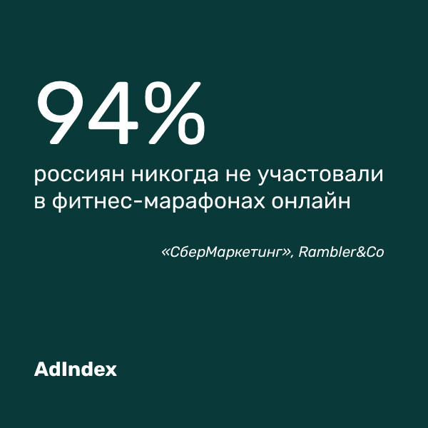 — Почти 95% россиян никогда не участвовали в фитнес-марафонахонлайн. Около 70% посетителей спортивных центров занимаются безтренера, 41% тренируются раз в неделю, согласно данным «CберМаркетинг»,Rambler&Co.