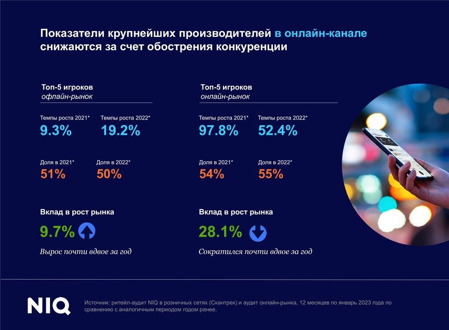 При этом внутри кондитерской группы темпы продаж в онлайн-каналахзамедляются. Общий вклад топ-5 игроков в рост онлайн-рынка сократился вдвое исоставил 28,1% год к году, динамика онлайн-продаж замедлилась до 50%.