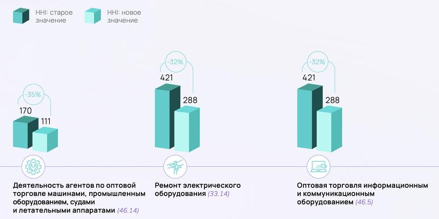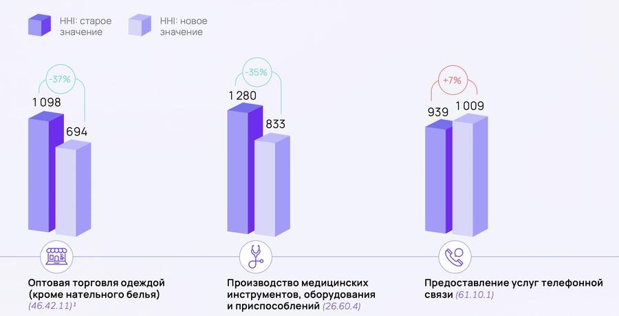 Аналитики оценили изменение концентрации на рынке в 2022 г. по сравнениюс 2021 г. с помощью индекса Херфиндаля – Хиршмана. Выручка компаний – основнойпоказатель в формуле расчета. Повышение степени концентрации означаетукрупнение участников рынка. Снижение этого значения свидетельствует об ихуменьшении.