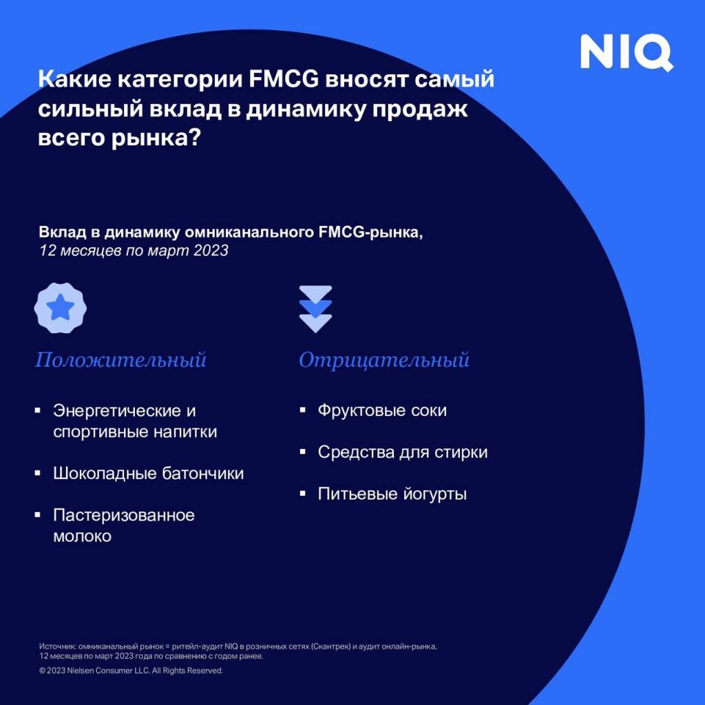 Самое сильное негативное влияние на продажи на омниканальном FMCG-рынке поитогам прошедших 12 месяцев оказали фруктовые соки, средства для стирки ипитьевые йогурты, согласно данным NielsenIQ.