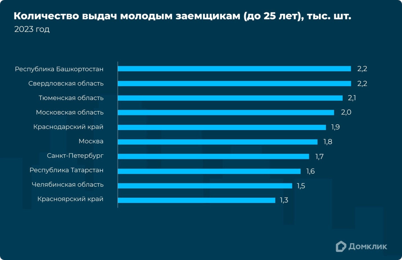 Примерно 46,5 тыс. кредитов было выдано молодым людям в возрасте от 18 до 25лет за неполные шесть месяцев 2023 г. Это 9,5% от всех сделок, согласно даннымисследования«Домклик» от «Сбера».