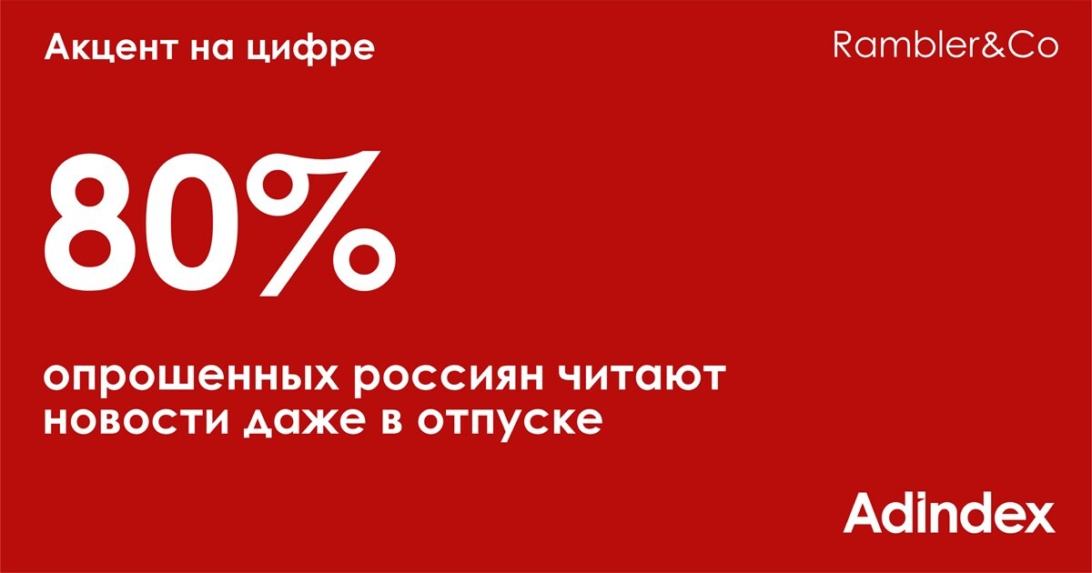 Большинство опрошенных россиян — 80% — читают новости даже вотпуске, 47% из них — с такой же регулярностью, как обычно, а 33% —немного реже. Только одна пятая часть россиян (20%) не следит за новостями наотдыхе, причем 16% ни при каких условиях, а 4% готовы открыть ссылку, которуюприслал друг или родственник, согласно данным опроса Rambler&Co.