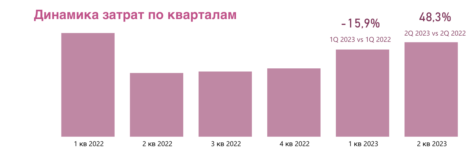 Общий рекламный бюджет сервисов по итогам первого квартала этого года упална 15%, а за второй квартал, наоборот, вырос на 48% год к году.