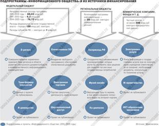 Программа 'Информационное общество' должна прийти на смену неудавшейся программе 'Электронная Россия', действие которой завершается в текущем году. В рамках 'Информационного общества' сформированы шесть подпрограмм: качество жизни граждан и условия развития бизнеса; электронное государство и эффективность государственного управления; российский рынок информационных и телекоммуникационных технологий; базовая инфраструктура информационного общества; безопасность в информационном обществе; цифровой контент и культурное наследие. В частности, они предполагают упрощение процедур взаимодействия с государством, перевод госуслуг в электронный вид, стимулирование отечественных разработок в области информационно-коммуникационных технологий (ИКТ), развитие сети технопарков, обеспечение независимости в отрасли ИКТ, развитие средств обработки цифрового контента и проч.