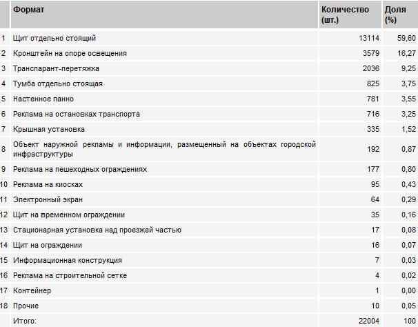 Всего в Москве представлены 18 различных форматов 'наружки' (см. таблицу).