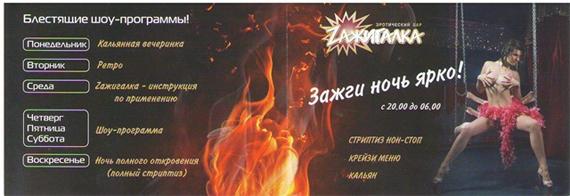 Ранее, в октябре 2011 года, в УФАС поступило несколько жалоб на рекламу ночного мужского эротического клуба 'Зажигалка'. Граждане писали о том, что данная реклама имеет явно эротическое содержание и 'ей не место на центральных улицах Волгограда'.