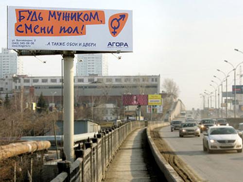 Управление Федеральной антимонопольной службы (ФАС) по Свердловской области получило жалобу на рекламу торговой компании Агора Будь мужиком, смени пол