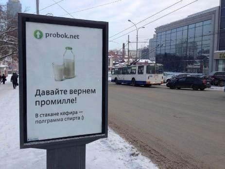 Рекламная кампания «Давайте вернем промилле!» идет с в декабря прошлого года в Москве и других крупных городах. На улицах размещено более полутора тысяч рекламных щитов, сообщающих о наличии спирта в ряде пищевых продуктов и с призывом вернуть норму о минимально допустимом пороге алкоголя в крови водителей. В Москве было размещено 1,1 тыс. билбордов, еще 500 установили в регионах.