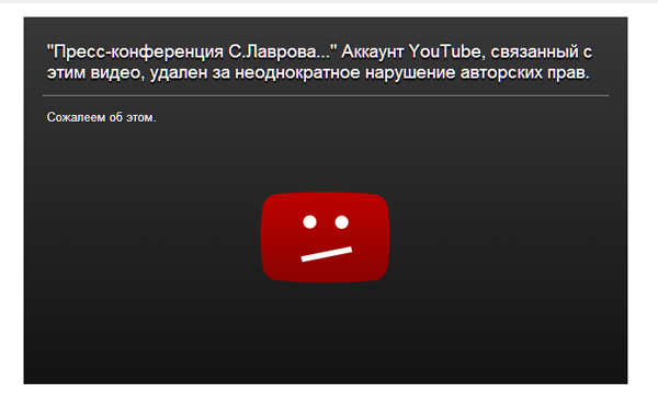 У Министерства иностранных дел России есть собственный канал в YouTube. Вернее, был – сейчас он заблокирован. YouTube заблокировал аккаунт из-за якобы нарушения авторских прав со стороны российского ведомства