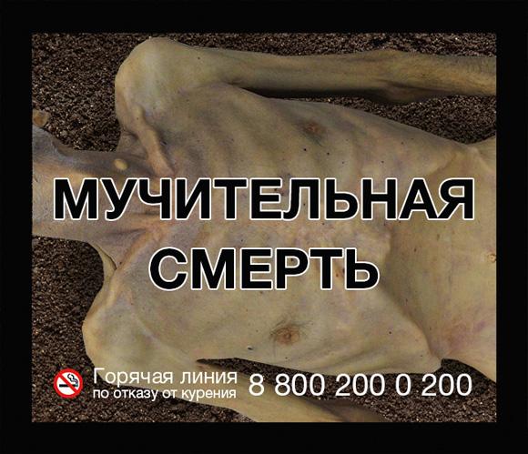 МЧС и Международная конфедерация обществ потребителей (КонфОП) передали Минздраву варианты новых иллюстраций для размещения на пачках сигарет. МЧС предлагает предупреждать курильщиков о необходимости соблюдать осторожность при курении с помощью фотографий погибших на пожарах. КонфОП подготовила 12 иллюстраций, которые показывают такие последствия курения для здоровья, как слепота, мучительная смерть, рак горла, рак легкого, гангрена, инсульт, инфаркт. По словам экспертов, страшные картинки оказывают самый большой эффект на тех, кто только начинает курить. Чтобы они действовали на курильщиков со стажем, их нужно менять не реже чем раз в год.