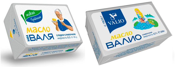 Valio обвиняет владельцев бренда «Баба Валя» - ООО «Традиция» - в копировании дизайна упаковки одноименного масла «до степени смешения». В связи с этим финская компания требовала внести изменения в оформление масла «Баба Валя».
